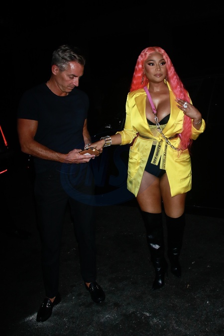 Nicki Minaj w zoltym szlafroczku i w rozowych wlosach