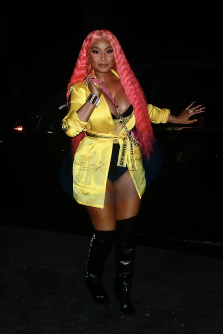 Nicki Minaj w zoltym szlafroczku i w rozowych wlosach