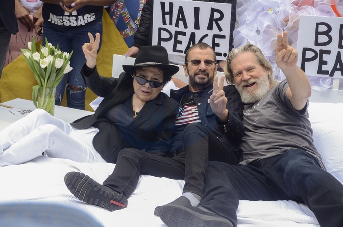 Yoko Ono, Ringo Starr i Jeff Bridge razem w lozku