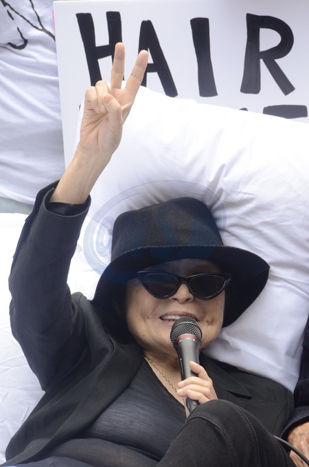 Yoko Ono, Ringo Starr i Jeff Bridge razem w lozku