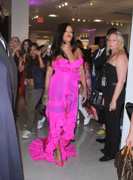 Rihanna w rozowej sukni swietuje 1. urodziny Fenty Beauty by Rihanna