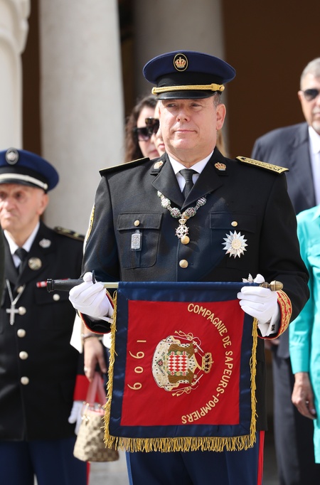 Monakijska rodzina ksiazeca podczas uroczystego przekazania wladzy pulkownikowi Tony Varo