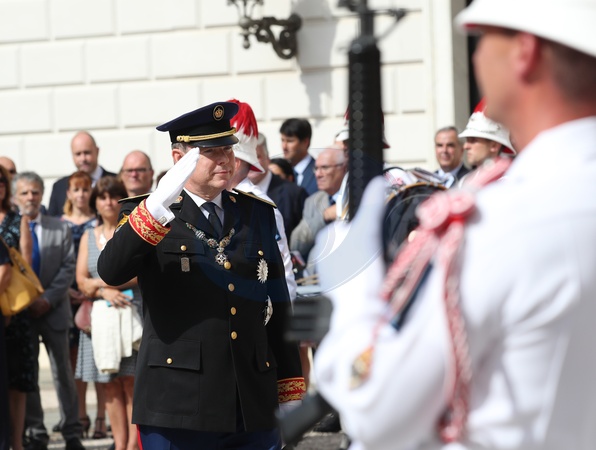 Monakijska rodzina ksiazeca podczas uroczystego przekazania wladzy pulkownikowi Tony Varo