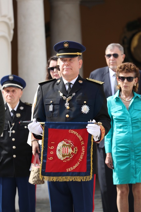 Monakijska rodzina ksiazeca podczas uroczystego przekazania wladzy pulkownikowi Tony Varo