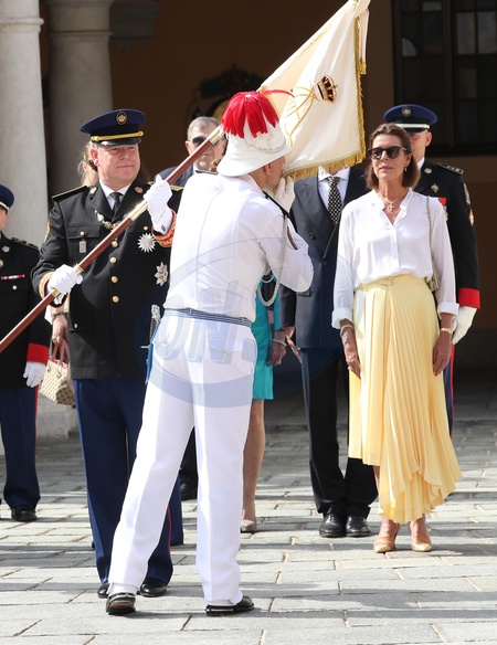 Monakijska rodzina ksiazeca podczas uroczystego przekazania wladzy pulkownikowi Tony Varo