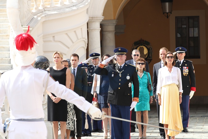 Monakijska rodzina ksiazeca podczas uroczystego przekazania wladzy pulkownikowi Tony Varo