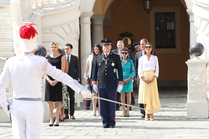 Monakijska rodzina ksiazeca podczas uroczystego przekazania wladzy pulkownikowi Tony Varo