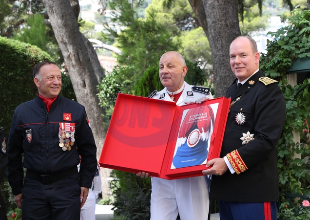 Monakijska rodzina ksiazeca podczas uroczystego przekazania wladzy pulkownikowi Tony Varo