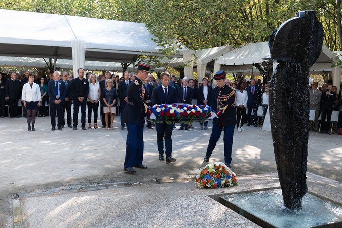 Prezydent Francji i ministrowie podczas narodowej ceremonii dla ofiar terroryzmu