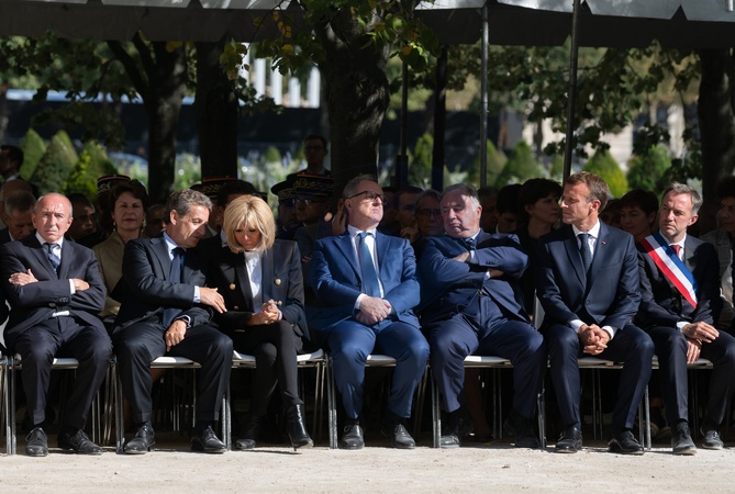 Prezydent Francji i ministrowie podczas narodowej ceremonii dla ofiar terroryzmu