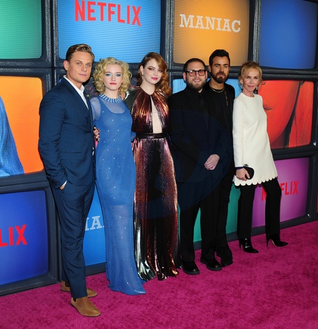 Billy Magnussen, Julia Garner, Emma Stone, Jonah Hill, Justin Theroux, Trudie Styler.jpg