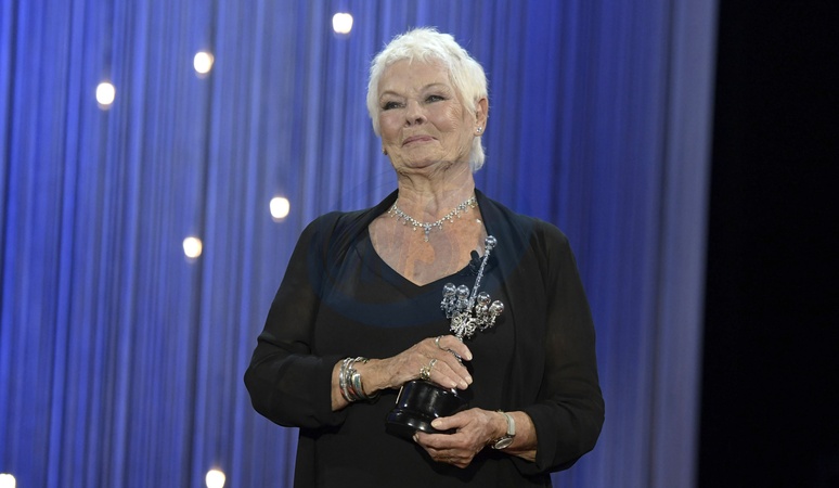 Wzruszona Judi Dench ze statuetka na festiwalu w San Sebastian