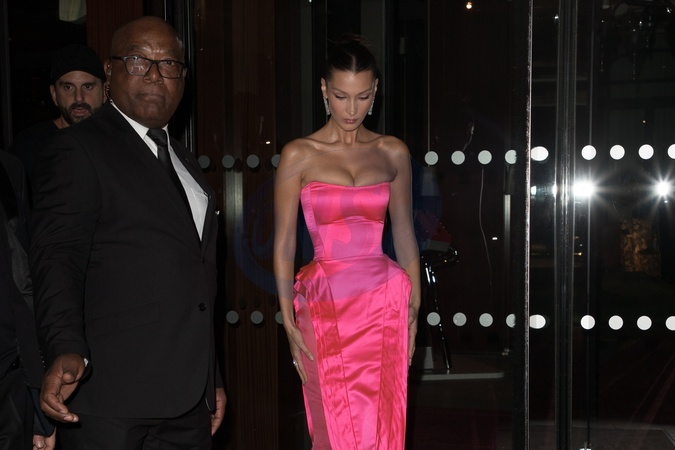 Bella Hadid w rozowej, satynowej sukience syrenie
