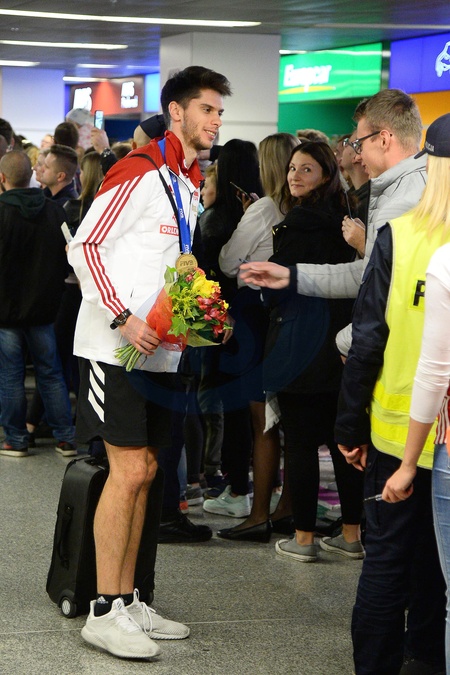 Mistrzowie Swiata w siatkowce na lotnisku w Warszawie