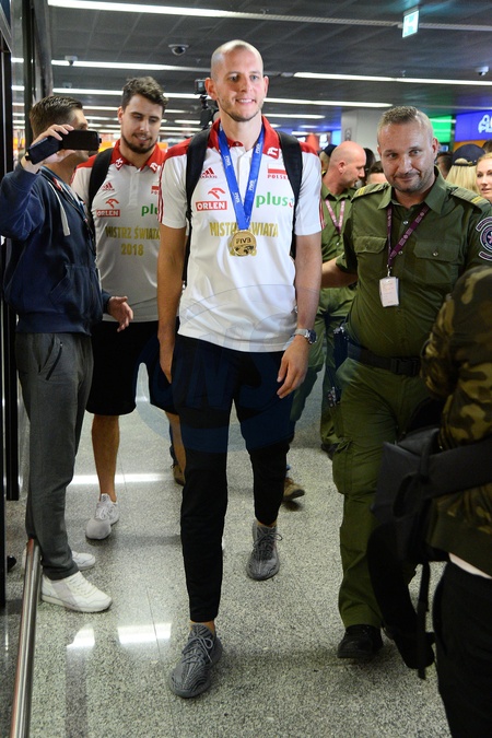 Mistrzowie Swiata w siatkowce na lotnisku w Warszawie