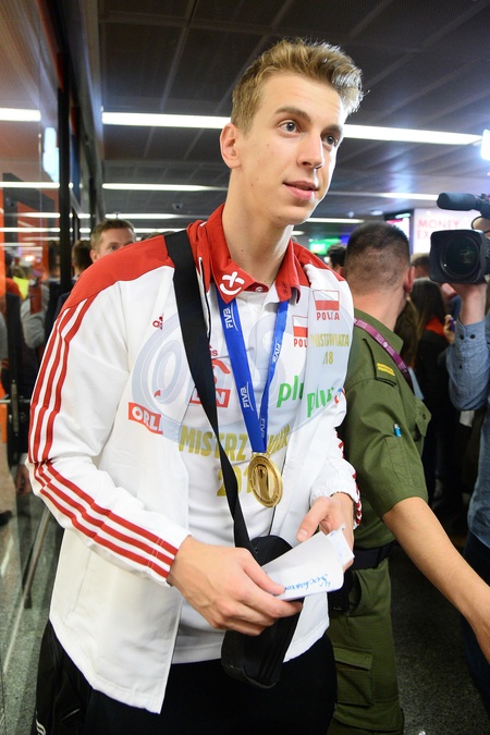 Mistrzowie Swiata w siatkowce na lotnisku w Warszawie