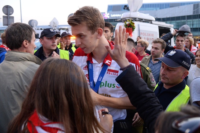 Mistrzowie Swiata w siatkowce na lotnisku w Warszawie