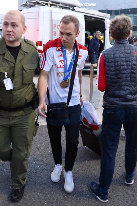 Mistrzowie Swiata w siatkowce na lotnisku w Warszawie