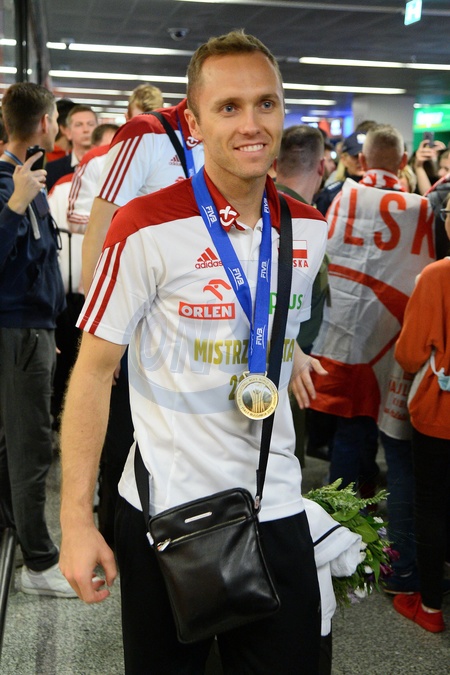 Mistrzowie Swiata w siatkowce na lotnisku w Warszawie