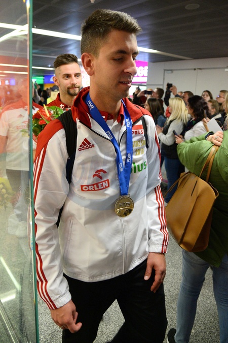 Mistrzowie Swiata w siatkowce na lotnisku w Warszawie