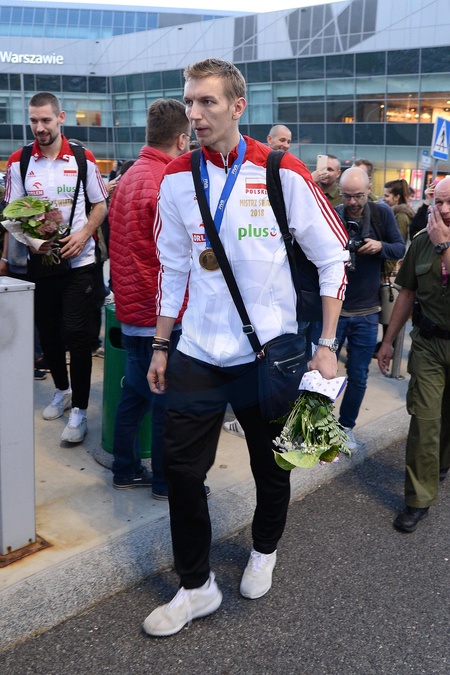 Mistrzowie Swiata w siatkowce na lotnisku w Warszawie