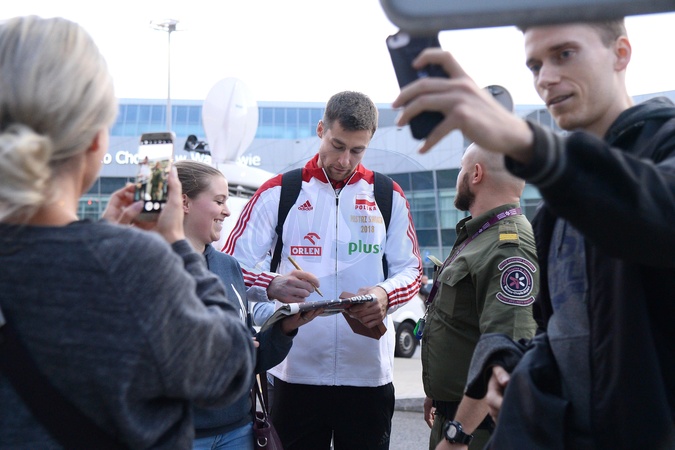 Mistrzowie Swiata w siatkowce na lotnisku w Warszawie
