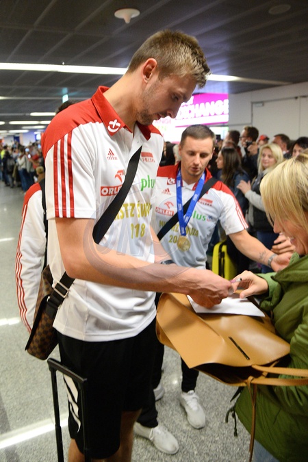 Mistrzowie Swiata w siatkowce na lotnisku w Warszawie