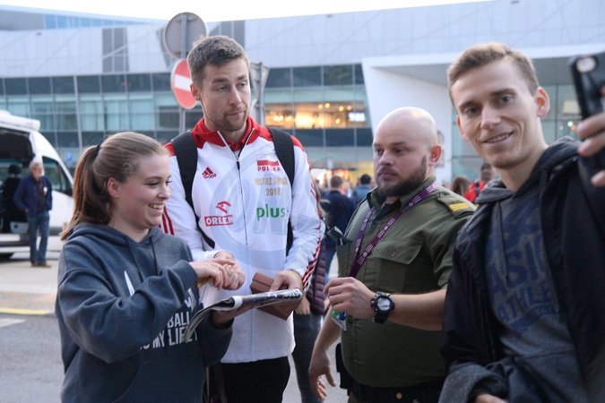 Mistrzowie Swiata w siatkowce na lotnisku w Warszawie