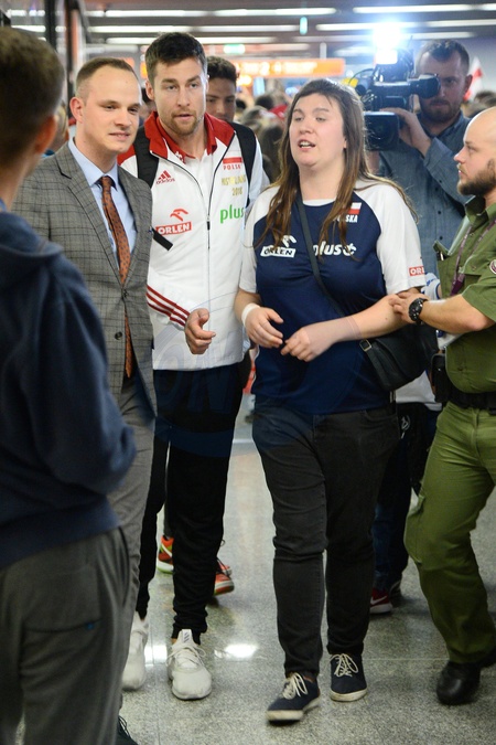 Mistrzowie Swiata w siatkowce na lotnisku w Warszawie