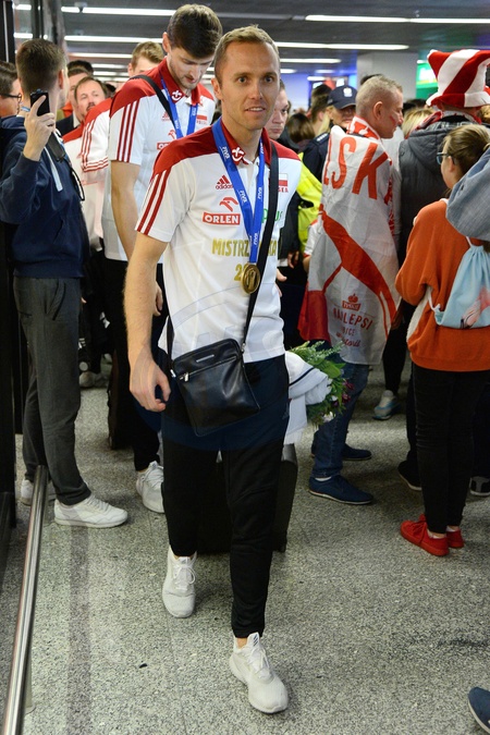 Mistrzowie Swiata w siatkowce na lotnisku w Warszawie
