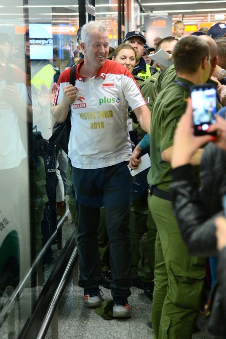 Mistrzowie Swiata w siatkowce na lotnisku w Warszawie