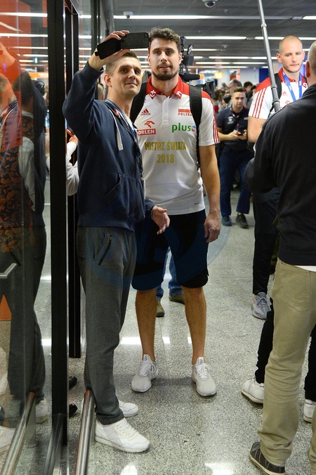 Mistrzowie Swiata w siatkowce na lotnisku w Warszawie