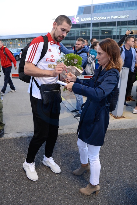 Mistrzowie Swiata w siatkowce na lotnisku w Warszawie