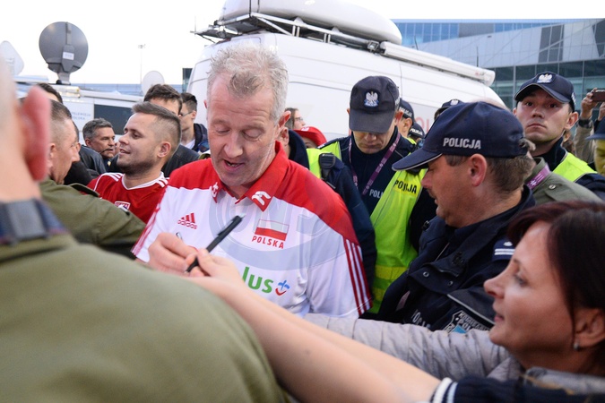 Mistrzowie Swiata w siatkowce na lotnisku w Warszawie