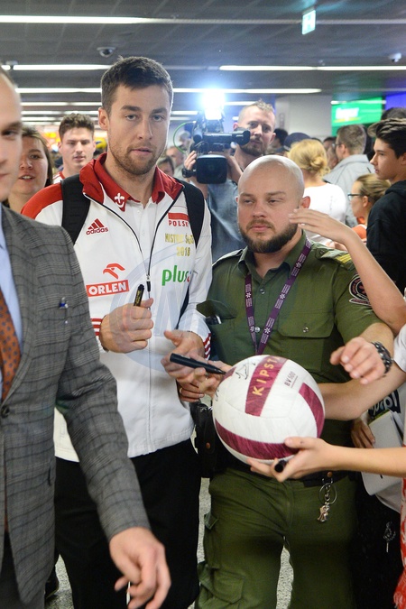 Mistrzowie Swiata w siatkowce na lotnisku w Warszawie