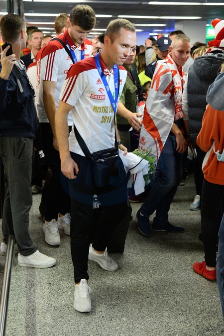 Mistrzowie Swiata w siatkowce na lotnisku w Warszawie