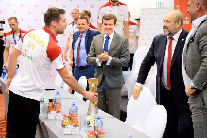 Mistrzowie Swiata w siatkowce na lotnisku w Warszawie