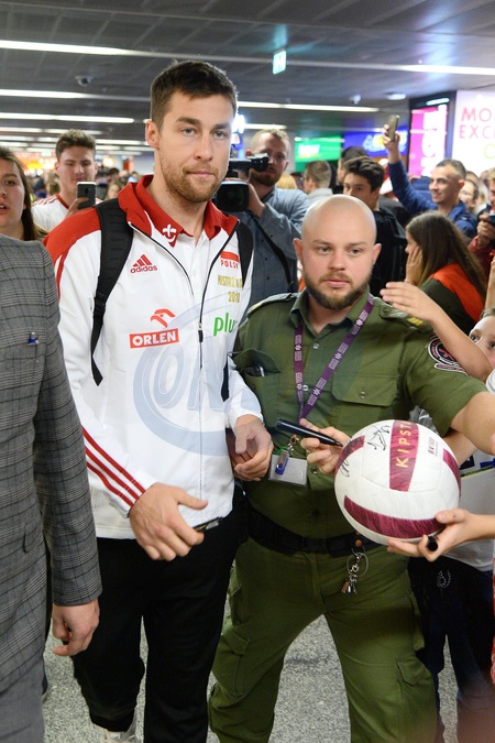Mistrzowie Swiata w siatkowce na lotnisku w Warszawie