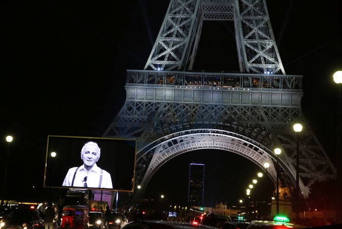 Charles Aznavour - wspomnienie przy Wiezy Eiffla