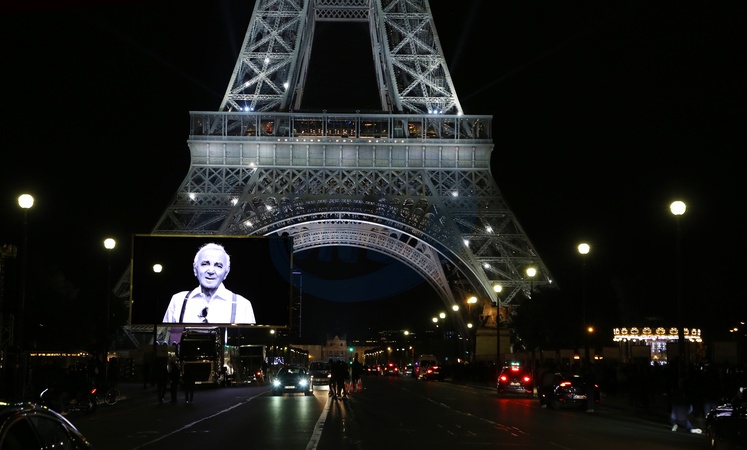 Charles Aznavour - wspomnienie przy Wiezy Eiffla