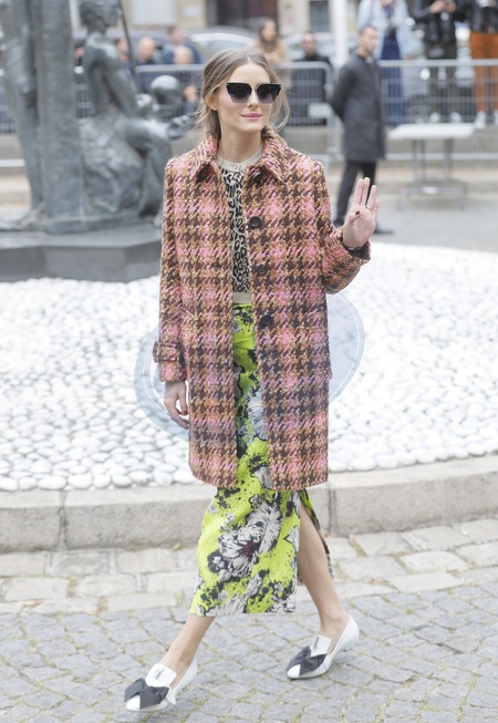 Olivia Palermo w jesiennym plaszczyku przed pokazem Miu Miu