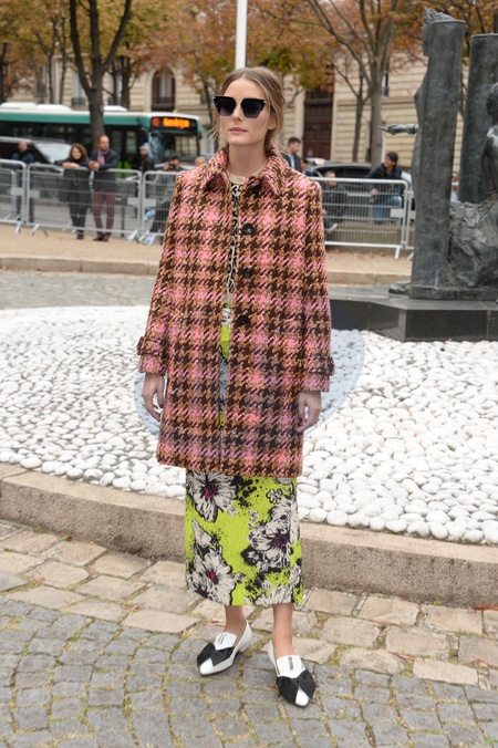 Olivia Palermo w jesiennym plaszczyku przed pokazem Miu Miu