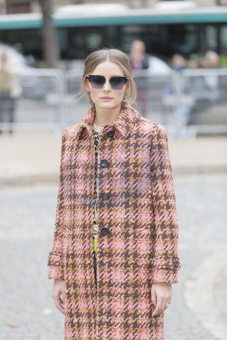Olivia Palermo w jesiennym plaszczyku przed pokazem Miu Miu