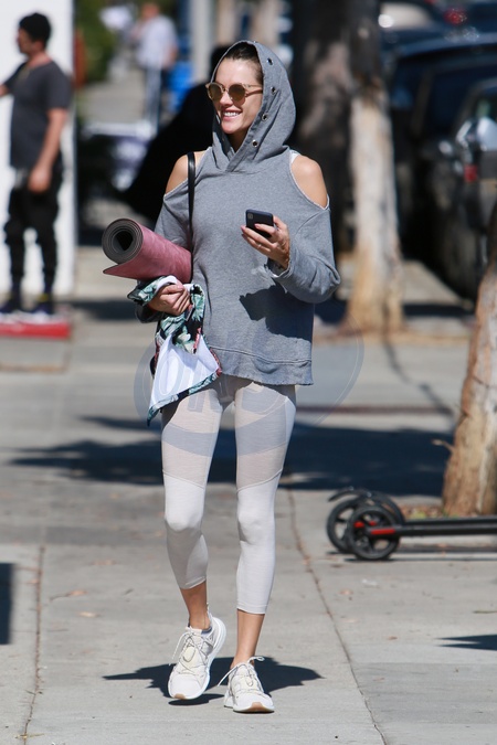 Alessandra Ambrosio w drodze na joge - z mata i torebka Gucci
