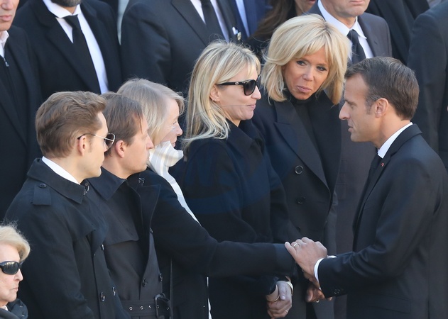 Ulla Aznavour i dzieci Nicolas, Mischa et Katia, Brigitte i Emmanuel Macron