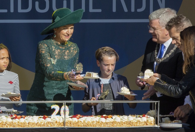 Krolowa Maxima w koronkowej, zielonej sukience i kapeluszu