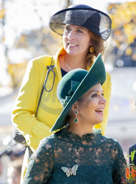 Krolowa Maxima w koronkowej, zielonej sukience i kapeluszu
