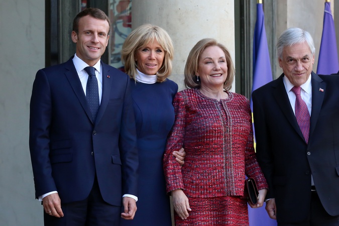 Emmanuel Macron, Brigitte Macron, Sebastian Pinera, Maria Cecilia Morel Montes