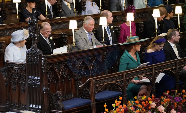 Krolowa Elzbieta,ksiaze Filip,Karol, William, Ksiezna Kate, Harry, Meghan, Sarah Ferguson, Beatrice.jpg