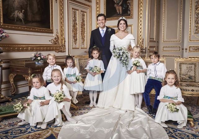 Ksiezniczka Eugenia, Jack Brooksbank, ksiaze Jerzy, Ksiezniczka Charlotte, Theodora Williams, Isla Phillips; Mistrz Louis De Givenchy, Mia Tindall, Savannah Phillips, Maud Windsor.